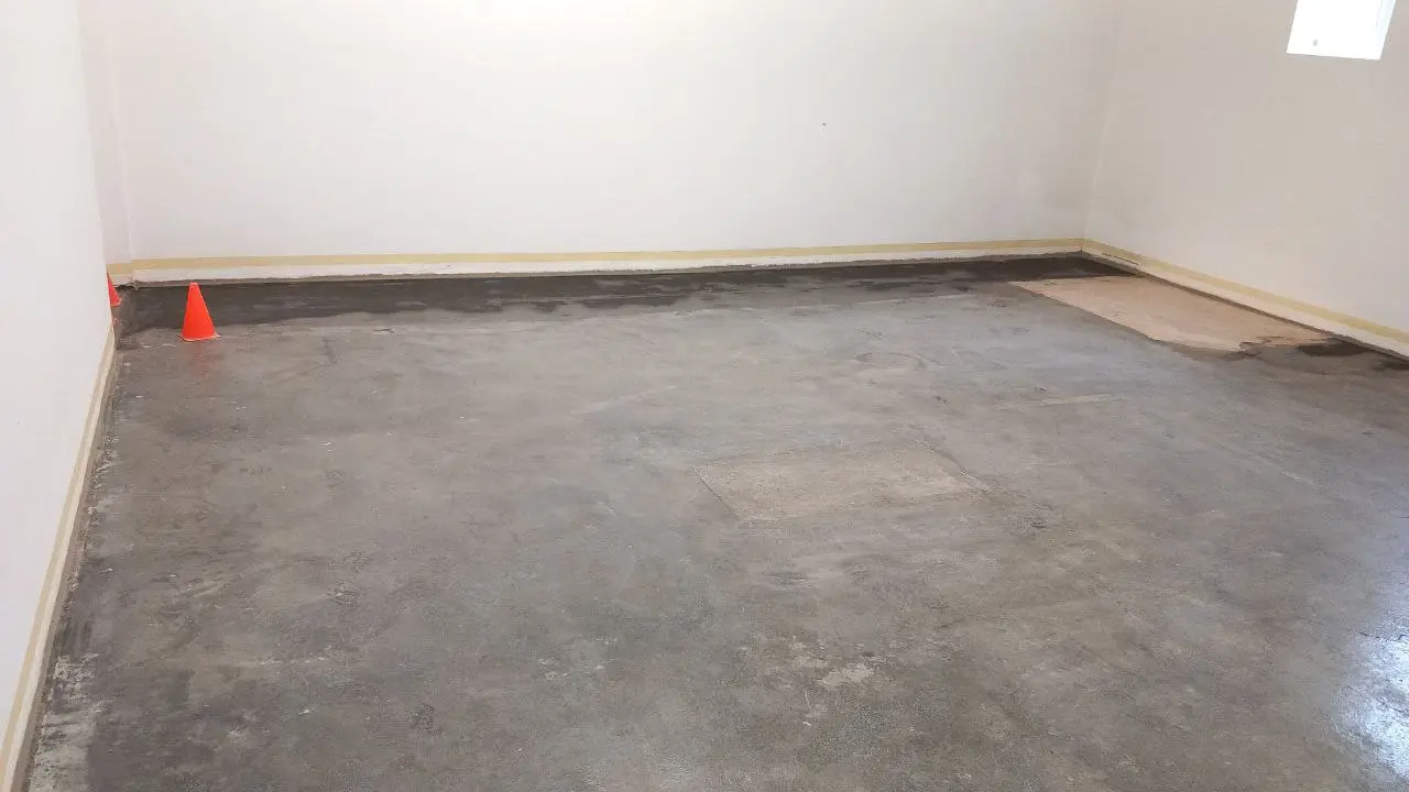 30+ éves beton felületre többrétegű (4 réteg) epoxi bevonat készült, ami garázsnak és raktárnak megfelelő.